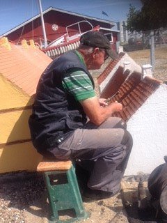 Skorstens (fejer) bygger, ved at renovere en stor skorsten