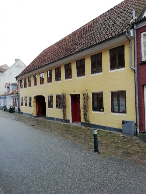 Her er Peder Barkers Gade 32 under "minibyens" renovering. Håndværkerne påstår at uden rigeligt mad og drikke dur selv håndværker ikke.